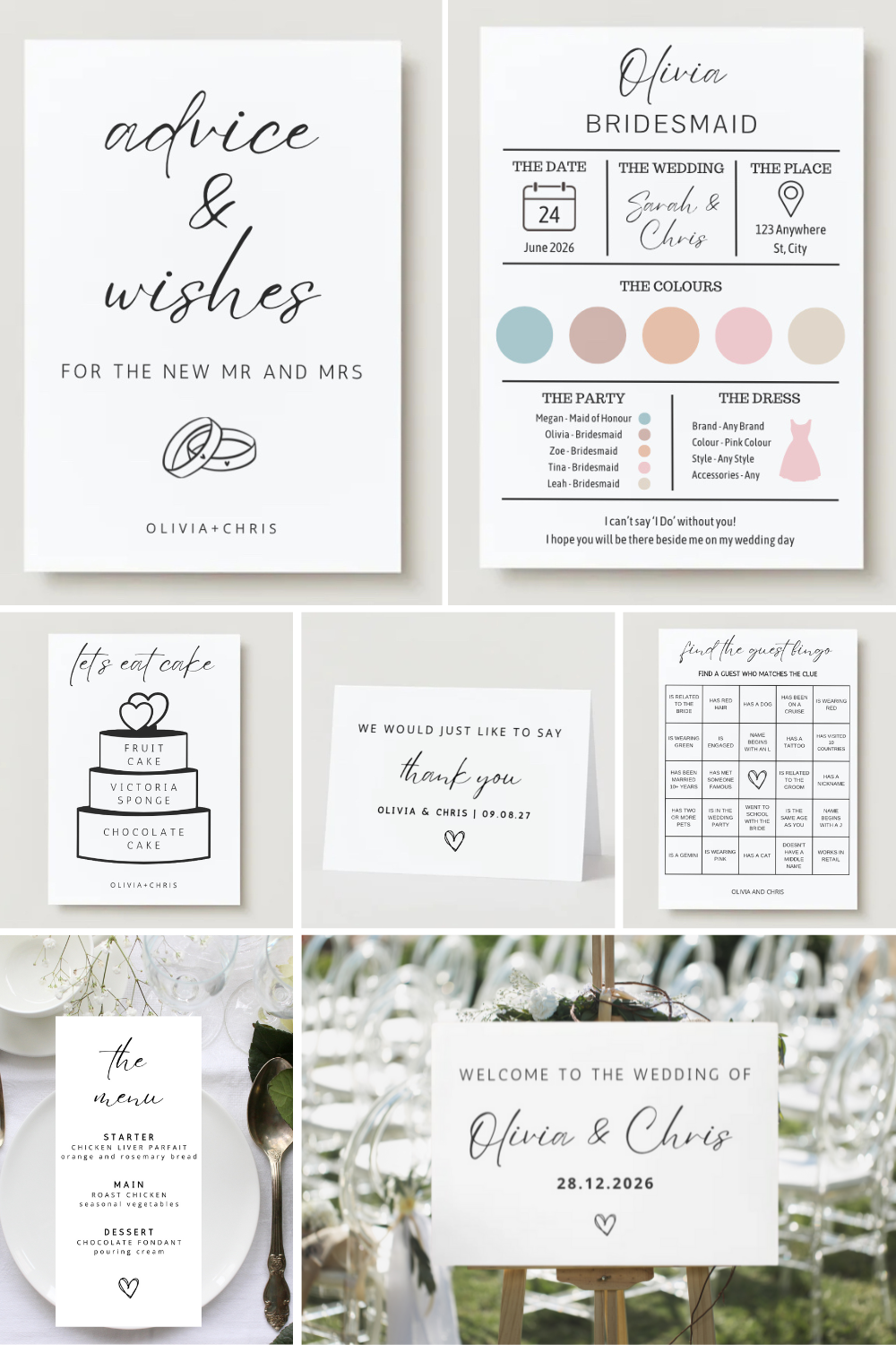 Our complete wedding stationery bundles provide an easy, cost effective solution to your wedding stationery needs. They provide everything you need for your special day. For the pre-wedding stationery, you will receive access to save the dates, bridesmaid and groomsman proposal cards, invites and much more. For on the day stationery, there’s a huge variety of products, such as welcome signs, wedding programmes, order of the day signs and plenty of other templates. For post-wedding, there’s thank you cards which you can send to your guests and show your appreciation for their attendance and any gifts they have given you. All of the templates are designed in the same style, so everything matches and gives a uniform look to your wedding stationery.